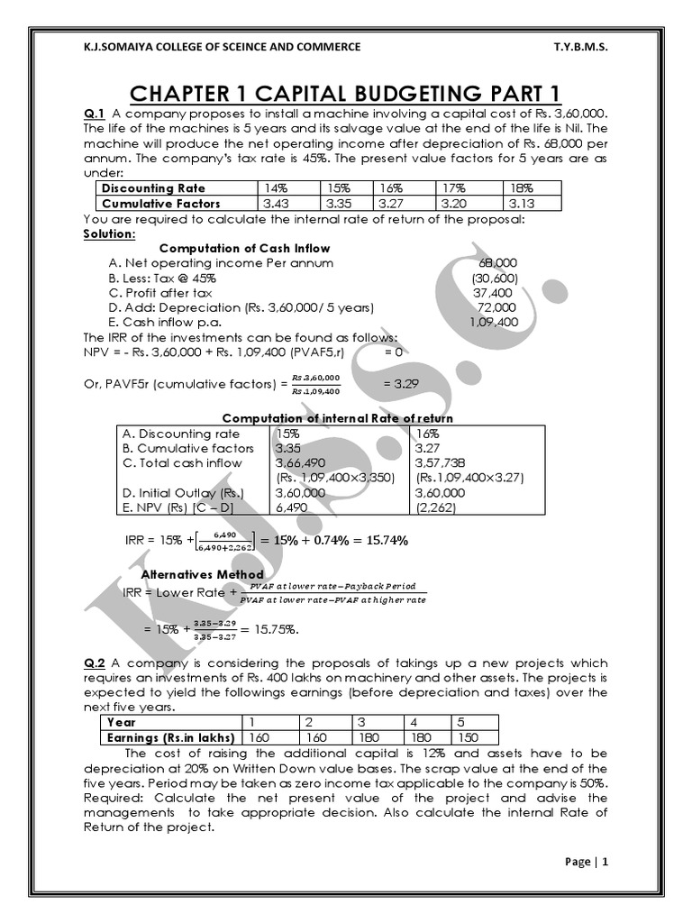 Capital Budgeting Tybms Pdf Net Present Value Internal Rate Of Return